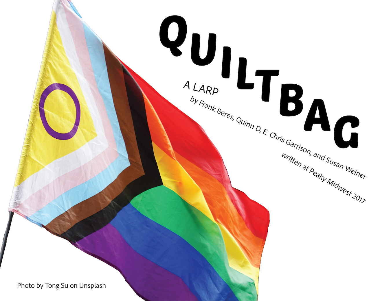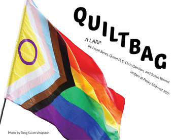 QUILTBAG is a game about the development of identity through community. The game takes place over the course of four months of support group meetings. Players will alternate between playing their characters in the support group and workshopping new relationships and what happens to their characters in between meetings based on event prompts. Characters are prewritten and 3-4 pages long.
